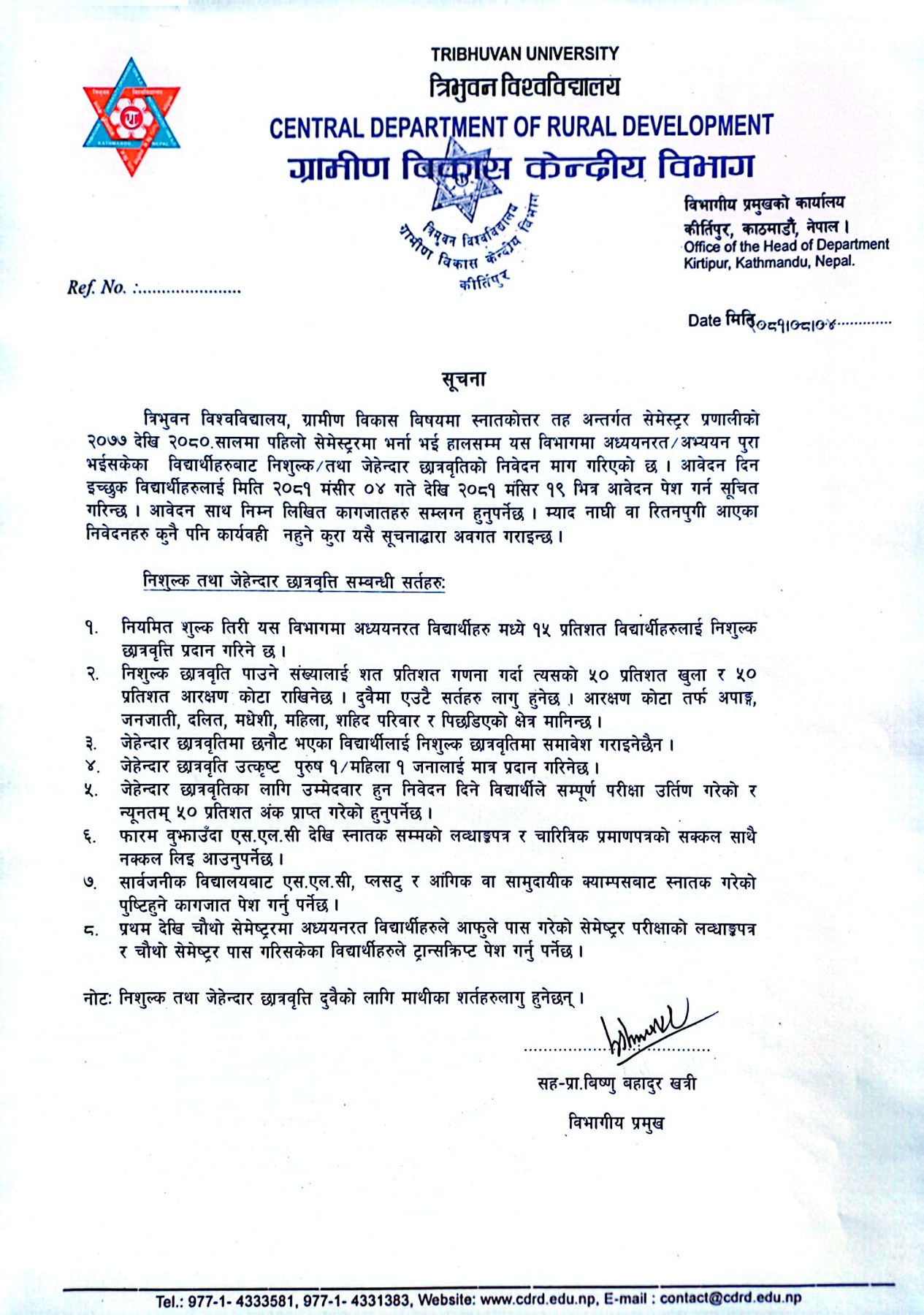 निशुल्क तथा जेहन्दार छात्रवृत्तीसम्बन्धी सूचना